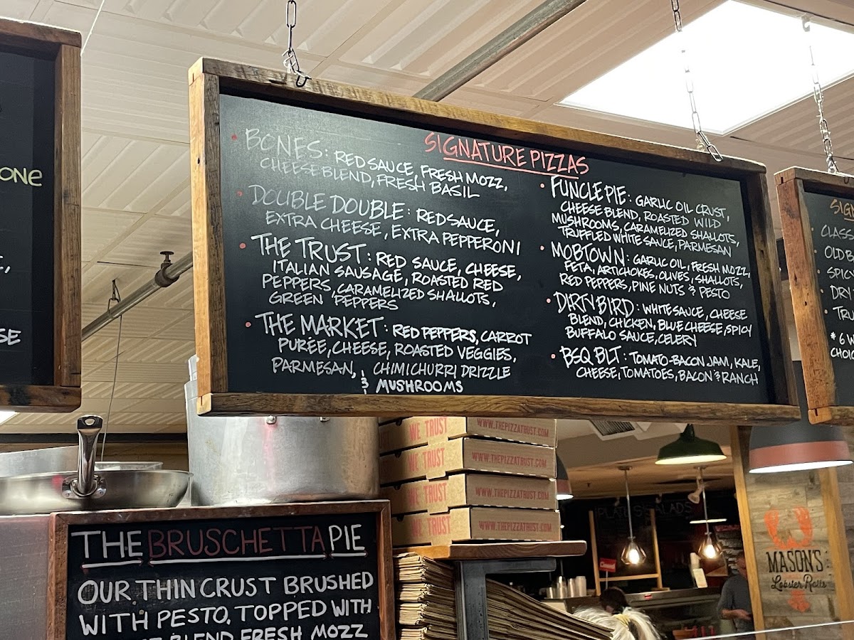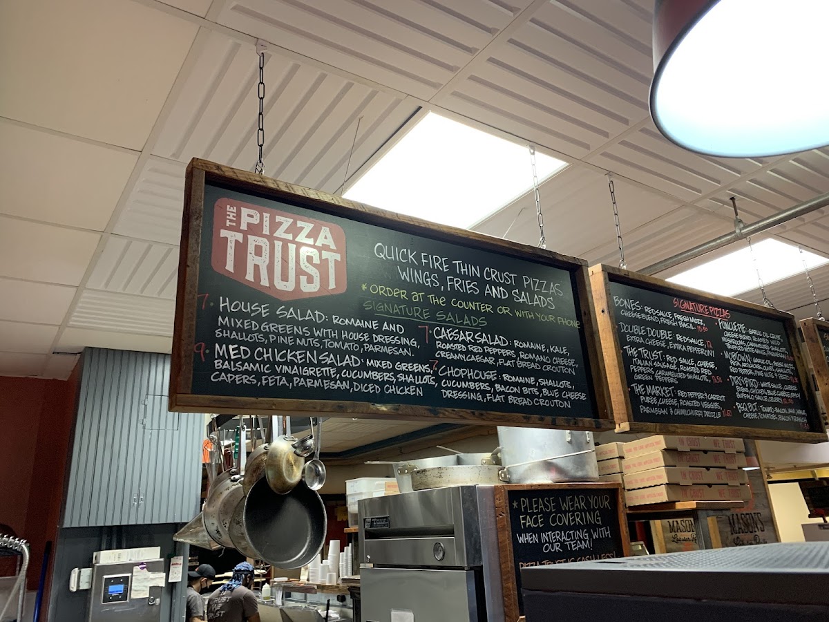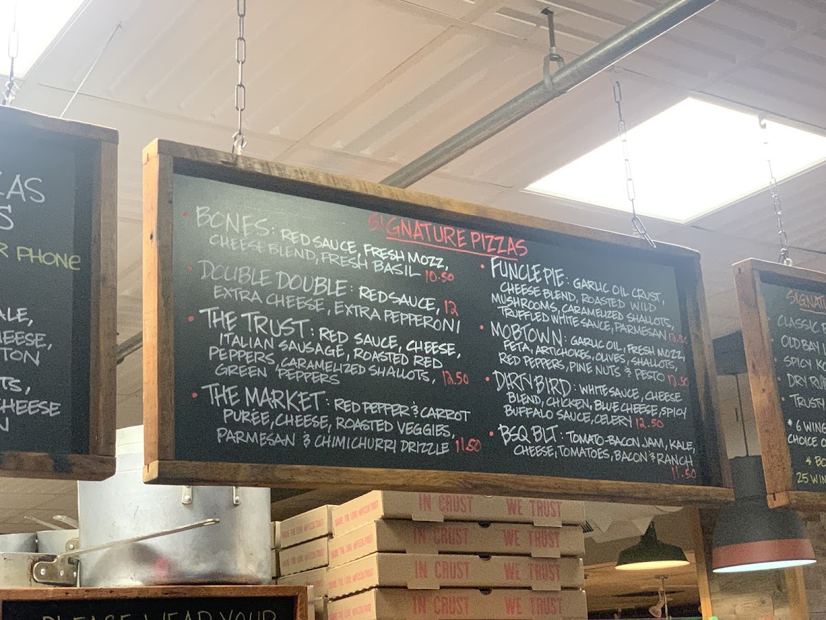 From a reviewer’s perspective, The Pizza Trust’s menu is a delightful showcase of creatively named signature pies that balance classic flavors with fun twists. Standouts include the Bones - $14.00_, a simple yet satisfying pie with house red sauce, light cheese blend, fresh mozzarella, and basil; the indulgent Double Double - $17.00_, layered with extra cheese and double pepperoni; and the bold Dirty Bird - $17.00_, with white sauce, cheese blend, antibiotic‑free chicken, blue cheese crumbles, buffalo drizzle, and celery that adds a spicy, tangy kick. The inventive BSQ B‑L‑T - $17.00_ elevates the classic bacon‑lettuce‑tomato with house‑made tomato bacon jam, cheese, bacon, tomatoes, kale, and ranch, while the eclectic Trust - $17.00_ brings together red sauce, cheese blend, caramelized shallots, peppers, and spicy Italian sausage for a more complex slice. These pizzas reflect a menu that caters to both traditional tastes and adventurous palates, with prices that generally sit in the mid‑range for casual Baltimore pizza spots.